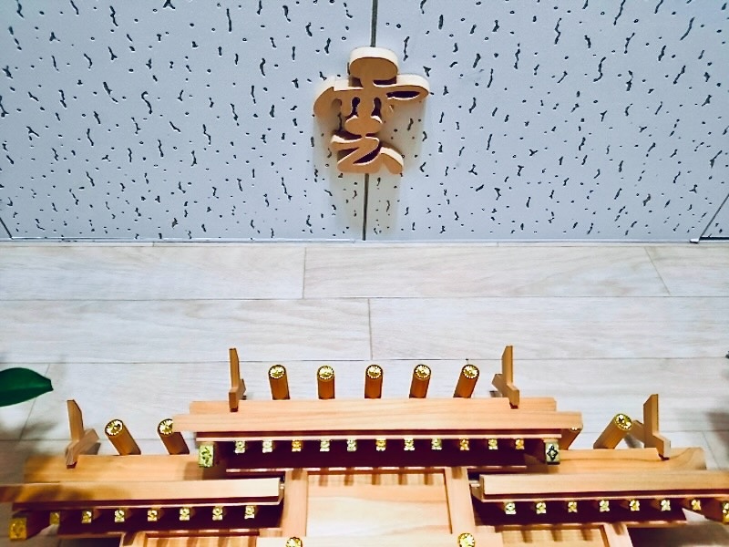 ⭐︎階層構造であれば、天に近い上階が好ましいが、最良と思える場所が一階にしか無い場合、神棚上の天井に「天」や「雲」と大きく書いた紙を両面テープなどで貼り付ける。