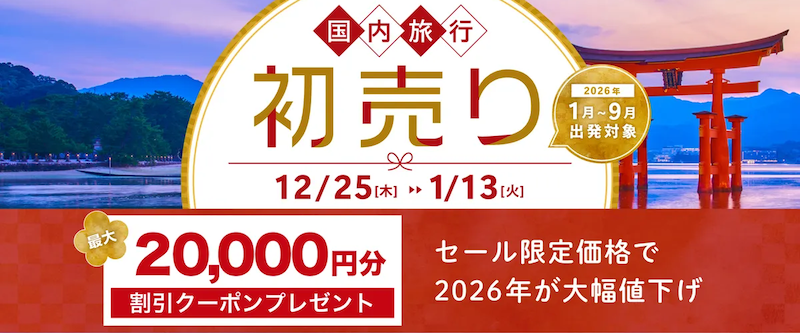 「【12月25日から開催💖格安国内旅行のJ-TRIP2026初売りセール】最大2万円OFFクーポンor限定特典..多数💋」の続きを読む…