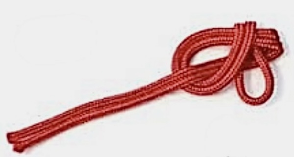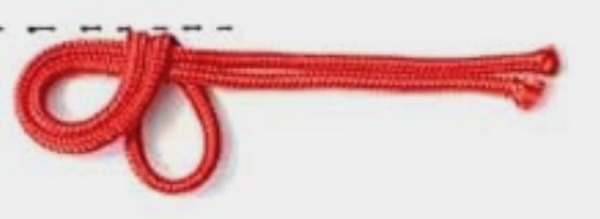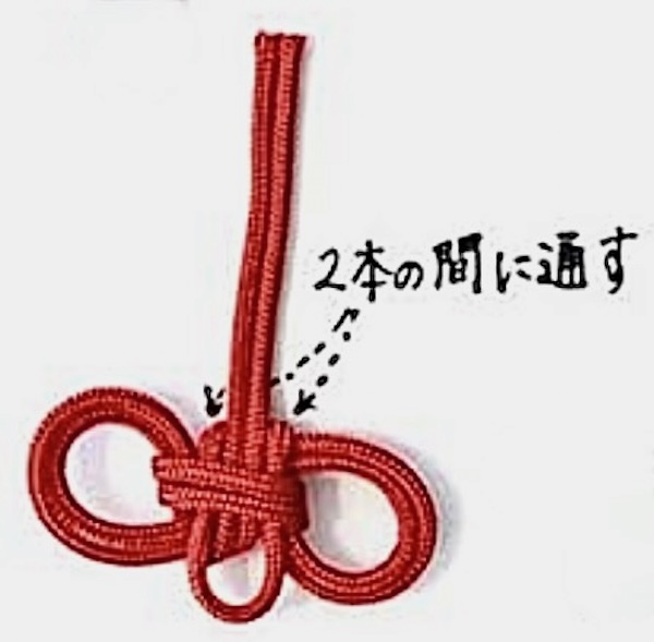この時、完全に最後までひっぱり切らずに、左側にも輪を残しておく。(次の工程でその輪に紐を通すため)